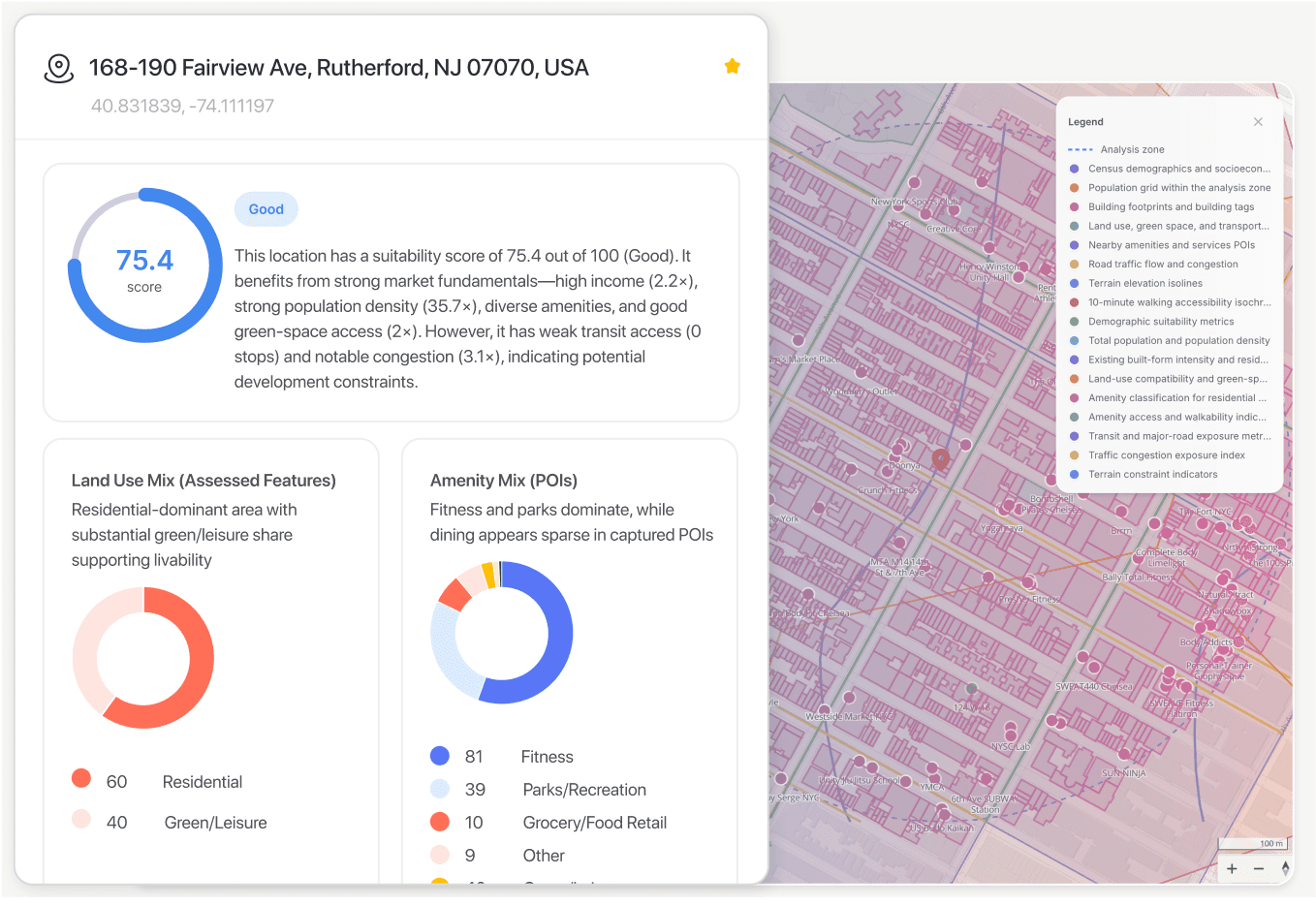 Run consistent, repeatable site analysis across your portfolio. Clear scores, structured insights, and documented logic.